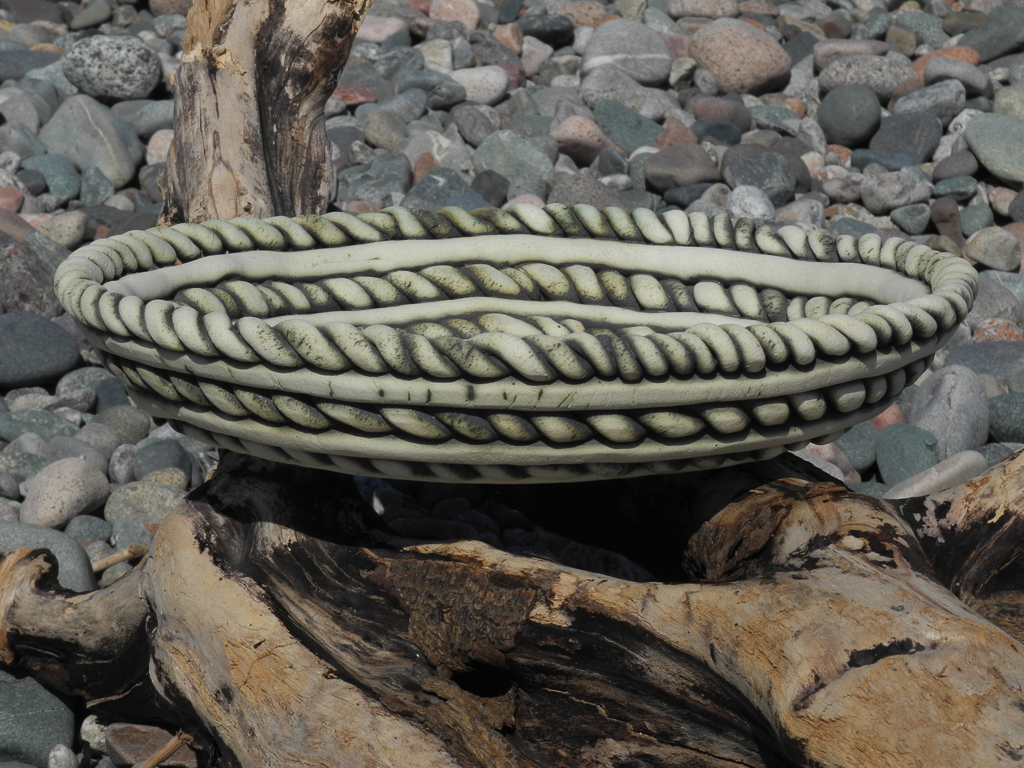 Soufflé par le vent, renversé sur les pierres de la plage, le bol
